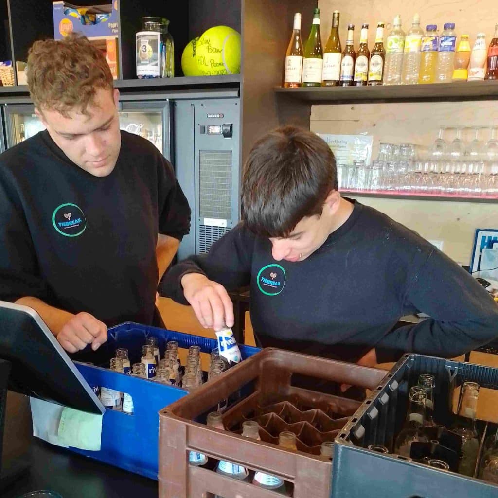 De samenwerking kreeg de naam Tiebreak en ging in juli 2023 van start. In eerste instantie met enkele deelnemers en bepaalde dagdelen, maar dat pakte zo goed uit dat dit werd uitgebreid naar een volledig weekprogramma. Van maandag tot en met vrijdag van 9.00 uur tot 16.00 uur is Tiebreak actief op het sportcomplex. Deelnemers worden begeleid vanuit Het Kompass; tennis- en padelvereniging Het Nieuwe Land stelt haar accommodatie kosteloos ter beschikking. Daar profiteren beide partijen van. “De deelnemers zijn niet bij ons in dienst”, zegt Tang. “Dat scheelt werk. Het Kompass houdt zich bezig met de administratieve lasten en gemeentelijke regelingen voor de deelnemers.”